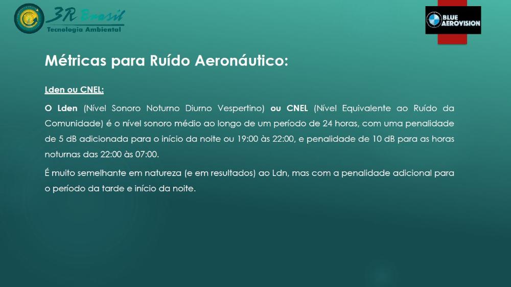são fundamentalmente os relacionados, a ruído, vibração, interferências físicas relativas a geometria na área sensível do heliponto, emissões atmosféricas e contaminação de solo e água subterrâneos na região do heliponto.Nível de incômodo estimado – Valores de referência calculados conforme literatura especializada, tendo por base, dentre outros LDN (“Level Day and Night”) e o SEL (“Sound Exposure Level”).
